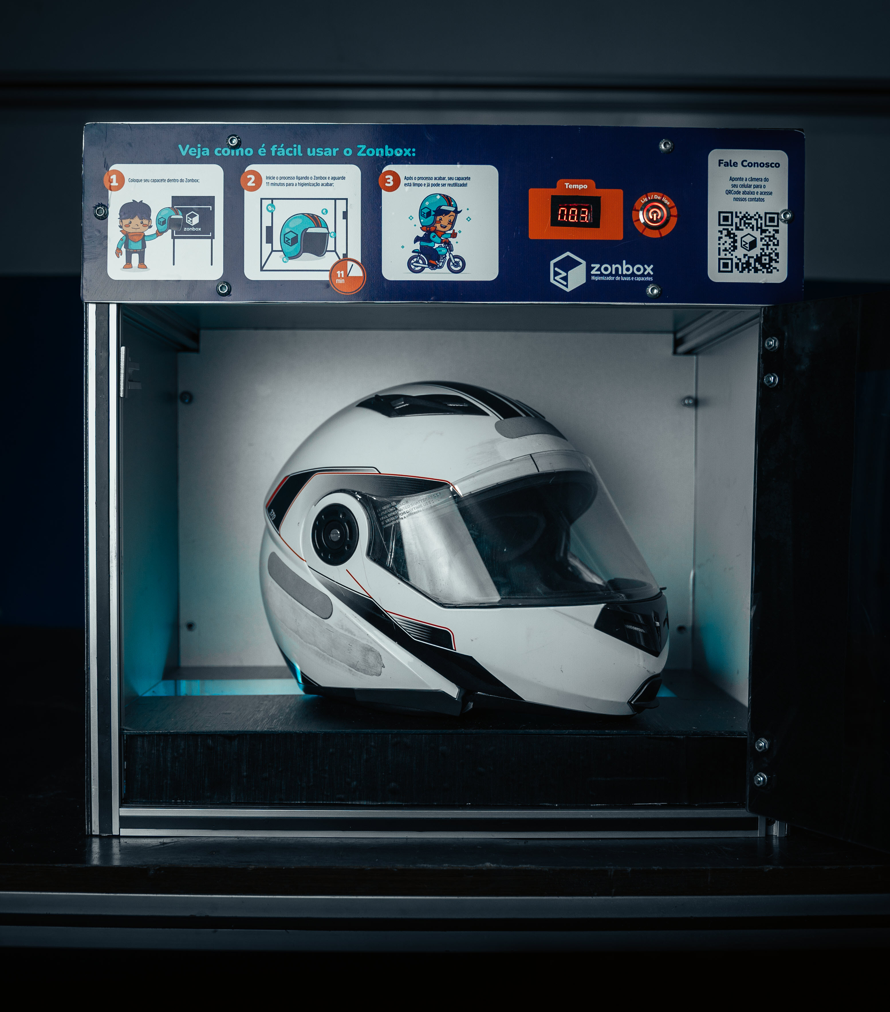 A Zonbox foi criada para oferecer soluções inovadoras e eficientes na higienização de capacetes e acessórios. Utilizamos tecnologia com ozônio, que elimina bactérias, fungos e odores de forma segura e ecológica, sem danificar os matérias.